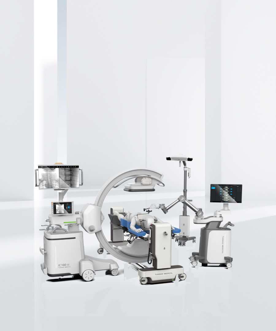 佗道医疗在数智骨科领域打造了超融合骨科手术机器人系统,整合骨科手术机器人与三维移动式C形臂X射线机,实现术中影像与机器人导航的无缝融合,提升手术效率和安全性。全骨科手术机器人Trinity支持脊柱、创伤、关节多亚专科应用,具备无影像配准技术,减少辐射暴露。佗道数智骨科已在全国超26个省份医院装机应用,覆盖三甲及基层医疗机构。